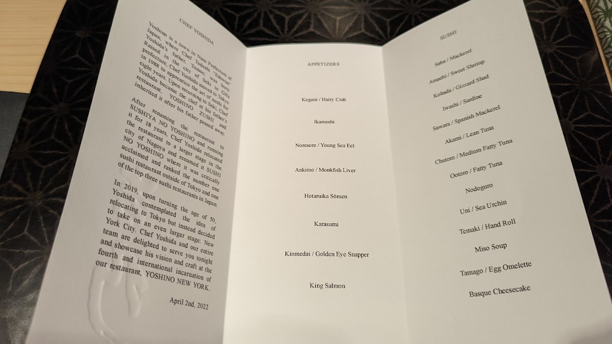 Welcome to YOSHINO • NEW YORK, where culinary artistry meets the spirit of Japanese sushi tradition. Located at 342 Bowery, this intimate eatery is a celebration of premium ingredients and exquisite craftsmanship. The omakase menu, carefully curated by Chef Yoshida, features an array of exceptional sushi offerings like Blackthroat Seaperch, Gizzard Shad, and Lean Tuna, each highlighting the freshness and quality that make YOSHINO a standout dining destination.